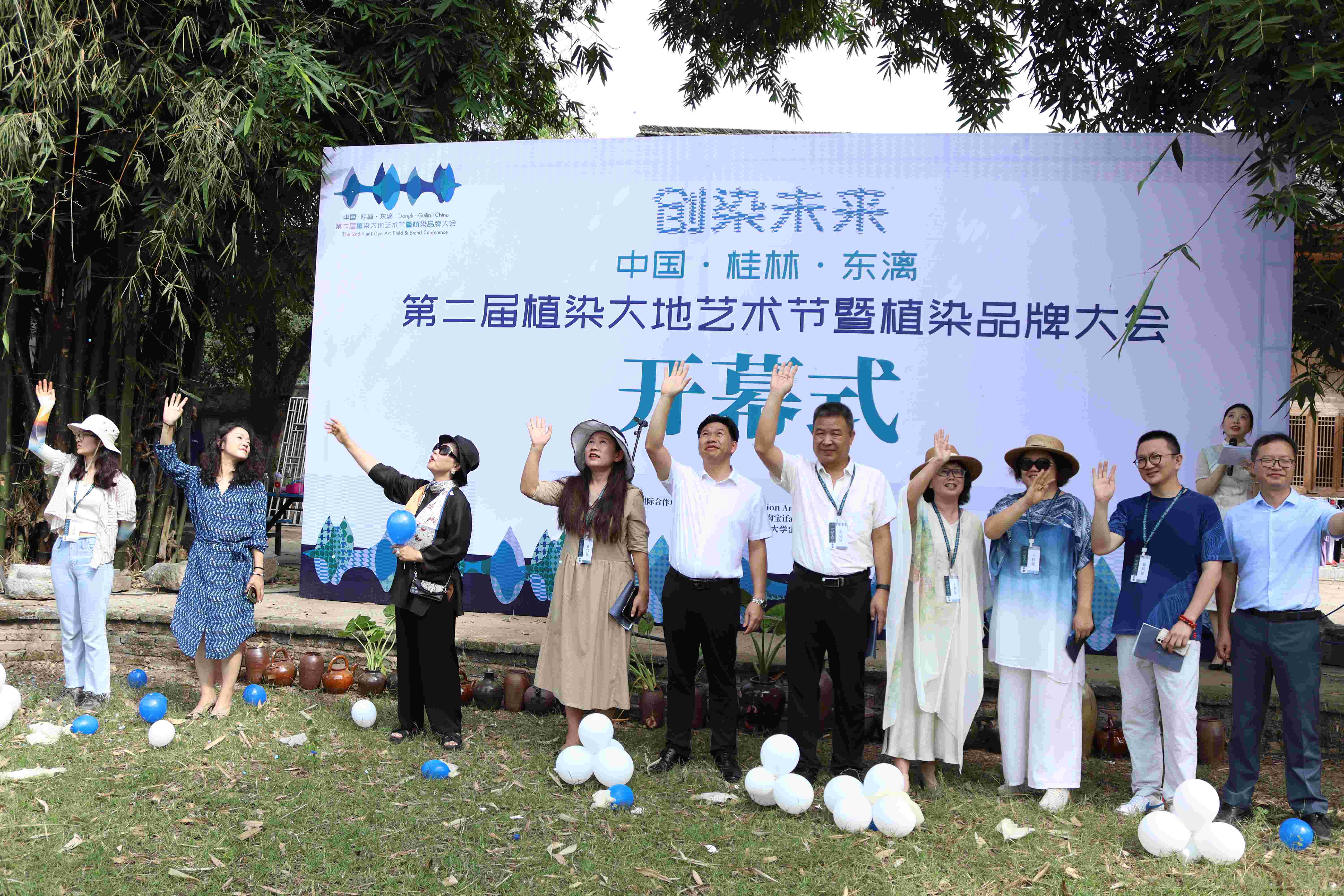 开幕式上,14位嘉宾共同启动“多彩植染 创染未来”中国·桂林·东漓第二届植染大地艺术节暨植染品牌大会。来自北京、广东、上海、中国台湾、江苏、浙江、广西以及印度的专家、艺术家、品牌方、志愿者等相关人士250余人共同出席开幕式。