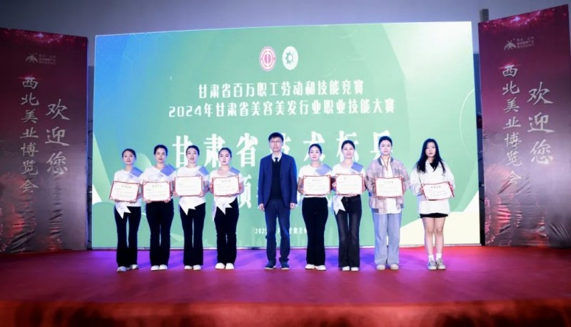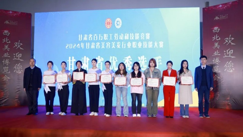 近日,由甘肃省总工会、甘肃省人力资源和社会保障厅、甘肃省工业和信息化厅、甘肃省科学技术厅、甘肃省人民政府国有资产监督管理委员会对2024年甘肃省百万职工劳动和技能竞赛获奖单位和个人进行通报表扬,美丽一生集团旗下诗丽堂6名美容师荣获“甘肃省技术标兵”称号!2025年4月6日,“甘肃省技术标兵”(美容美发行业)在甘肃国际会展中心美博会主会场接受颁奖。