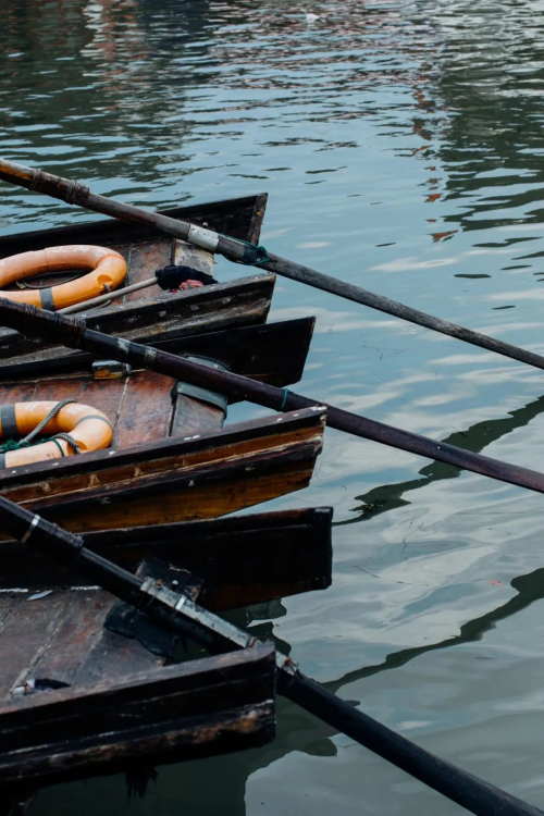 欣赏着两岸斑驳的古建筑