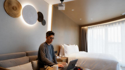 在荟语酒店宁静的空间里,Felix聆听大堂的音乐,欣赏桌面花的颜色,凝视茶杯中氤氲的水汽,焦虑也随之消散。