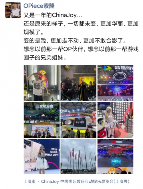 据悉,索隆不仅在OPiece海贼王公会内是备受尊敬的领袖,他在游戏界也是一名资深玩家。现场的公会成员们表示,索隆的到访为他们带来了莫大的鼓舞和激励,更增添了公会参与ChinaJoy的荣耀感。