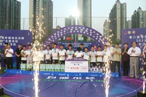 本次总决赛,不仅仅是为全国竞技足球储备人才,更是带动全国的少年热爱足球,热爱运动,热爱生活,绽放自我,真正地从骨髓里,从潜意识里养成足球意识和文化基因,夯实中国足球的真正基础,发挥中国几千万少年群体的大基数优势,培植足球土壤,焕发足球魅力,提升足球快乐指数,摈弃足球仅仅是名次和急功近利的短视意识。真正做到十年磨一剑,扬眉剑出鞘的战略发展践行。同时也唤醒了全社会各届人士献出一份爱心,托起一份希望!"茵”为有力,“足”够精彩,不一样的内力,不一样的中国力量,少年强,则国强,少年胜于欧洲则国胜于欧洲,少年雄于地球则国雄于地球,中国少年足球,长沙发声,冲出亚洲、走向世界!( 记录者:谭葵 编辑:李顺萍)