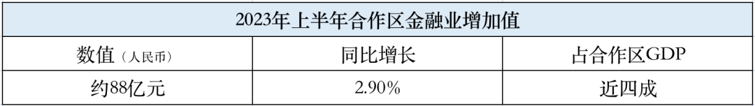 合作区金融业增加值约88亿元,同比增长2.9%,占合作区GDP足足近四成的比例