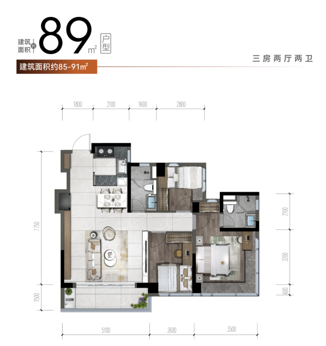 89平的三房两厅两卫,带来的是首付仅需130w便可以上车横琴金融岛的机会