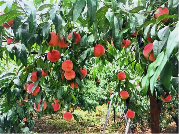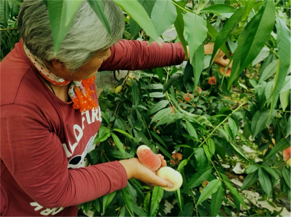 果农清晨摘桃忙