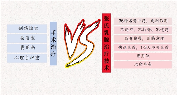 1、传承《张氏乳腺病中医外贴疗法》,结合现代医学技术,开辟乳腺病治疗新途径:《张氏乳腺病中医外贴疗法》是一种治疗乳腺增生、乳腺炎、乳腺结节、乳腺纤维瘤、早期乳腺癌等各种乳腺疾病的一种纯中药外治疗法、外用传统膏药。是通过中医穴位利用所形成的能量冲击,药物直入脉络,激活细胞活性,改善微循环,加速受损组织修复,通经活络,软坚散结,加速新陈代谢,促进病变部位毒素排出,改善病变部位血液循环,拔出病因、截断邪路,直达乳腺病病灶,彻底消灭乳腺内硬块,把乳腺癌消灭在萌芽状态。