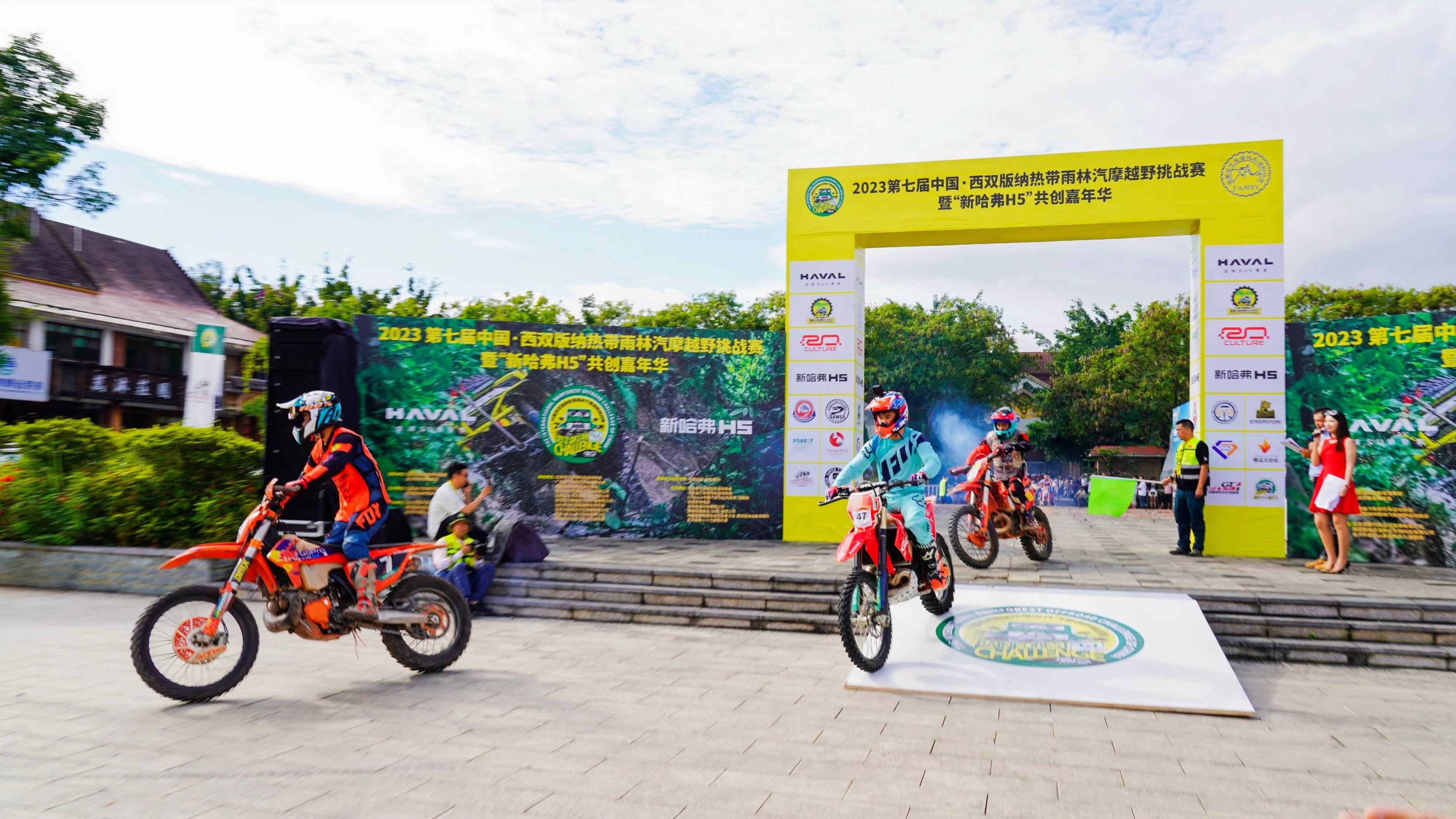 2023 第七届中国·西双版纳热带雨林汽摩越野挑战赛暨“新哈弗H5”共创嘉年华于11月3日上午在景洪市正式发车。西双版纳傣族自治州州委常委、州人民政府副州长徐克辉宣布本届赛事开幕,西双版纳傣族自治州教育体育局党组成员、副局长阮佳出席并致欢迎词。