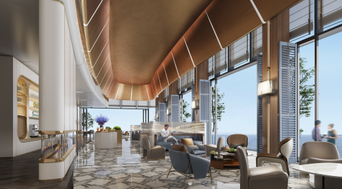 大堂及大堂吧以海边“天幕”为灵感,让活力极具的海边“天幕”融合海岸线的张力,营造出极具生命力的舒适乐享空间。