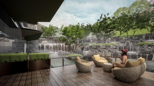 以山为背景,以水为灵魂,以符合现代的审美将岭南地区传统建筑的风貌与自然风光相结合,水院、冷巷、天井、环廊……当地民居的标志性结构处处可见。依照山地的走向,吸纳森林公园中原有的林地、水体,把岭南兼容并包的文化个性以视觉化的方式呈现。立足于钓鱼台品牌的中国神韵,汲取珠海蓬勃向上的城市精神,成就了“新岭南”风格的新式酒店空间。