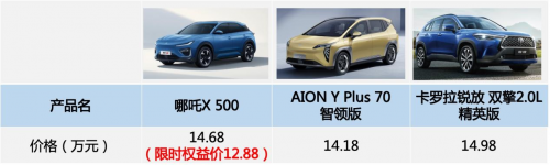 从数据上不难看出,哪吒X的车身长度和轴距均拥有较大优势,为用户带来了较好的乘坐体验。AION Y Plus的宽度和高度表现不错,但是就车身造型而言,经常让人分不清这款车是SUV还是MPV,在大街上看到,总感觉像个网约车。卡罗拉锐放的车身尺寸基本没有优势,长度还没超过4.5米,轴距更是三款车中最短的,逢年过节全家出门时,后排乘坐体验较拥挤。