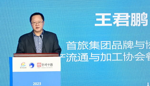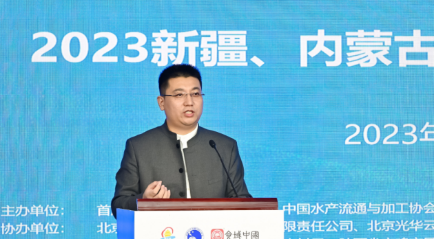 首旅集团品牌与协同发展部部长、中国水产流通与加工协会餐饮酒店采购委员会会长王君鹏致辞欢迎与会嘉宾。