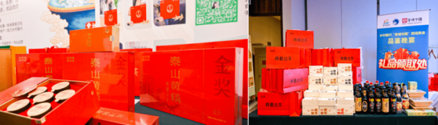 由中国食品报“食域中国”特产馆特别支持的晚宴抽奖环节,备受期待和好评。抽奖活动由山东泰尚黄生物科技有限公司、山东东阿阿健阿胶生物工程有限公司、山东头一锅餐饮管理连锁有限公司及新希望集团成都国酿食品股份有限公司、四川宜宾汇品牌管理有限公司等单位提供现场活动奖品支持。