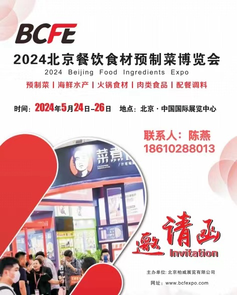 2024北京餐饮食材预制菜博览会将于2024年5月24日-26日在北京·中国国际展览中心举办。作为国际消费城市,北京餐饮国际化特征显著,在各品牌不断竞争、发展、融合之中形成了极具自身特色的餐饮生态,是名副其实的“美食大舞台”。展会依托北京餐饮多元化、品质化、国际化等特点,汇集预制菜、海鲜水产、火锅食材、肉类食品等行业热门细分领域,以“加强经贸合作、对接国际资源”为目标,积极发挥组织引导力与平台资源聚合作用,为海内外生产商、经销商、消费者等群体提供经销洽谈、商贸合作的机会,力拓海内外餐饮消费市场,助力各方营销收入增长、共赢产业红利,打造引资高效化、参观趣味化、思想高端化的国际行业盛会,为餐饮业发展注入别样的新思潮、新业态,全心全意展示“BCFE北京餐食会”这张国际餐饮靓丽名片!