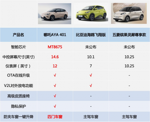 在大多数人能接受的10万内纯电车型中,哪吒AYA、五菱缤果、比亚迪海鸥是经常让大家纠结的对象,那么谁更适合作为新年礼物呢?选礼物可不能“梭哈”,今天我们就通过全面对比,来选出不会踩雷的新年礼物。