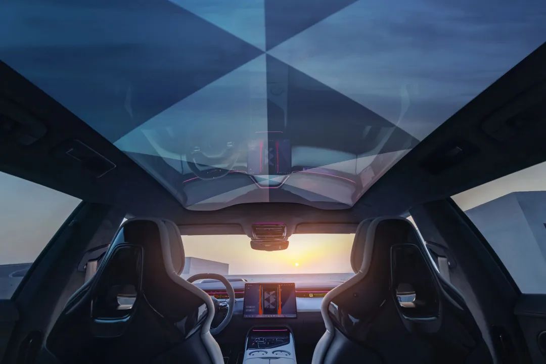天气炎热时,该天幕可转换为遮光隔热模式。既能遮挡阳光照射,也能有效隔绝红外线和紫外线。此前,特斯拉的全景天幕就因为夏天特别热而广受诟病,EMEYA则很好地解决了这个困扰有着全景天幕喜好消费者的切实痛点。