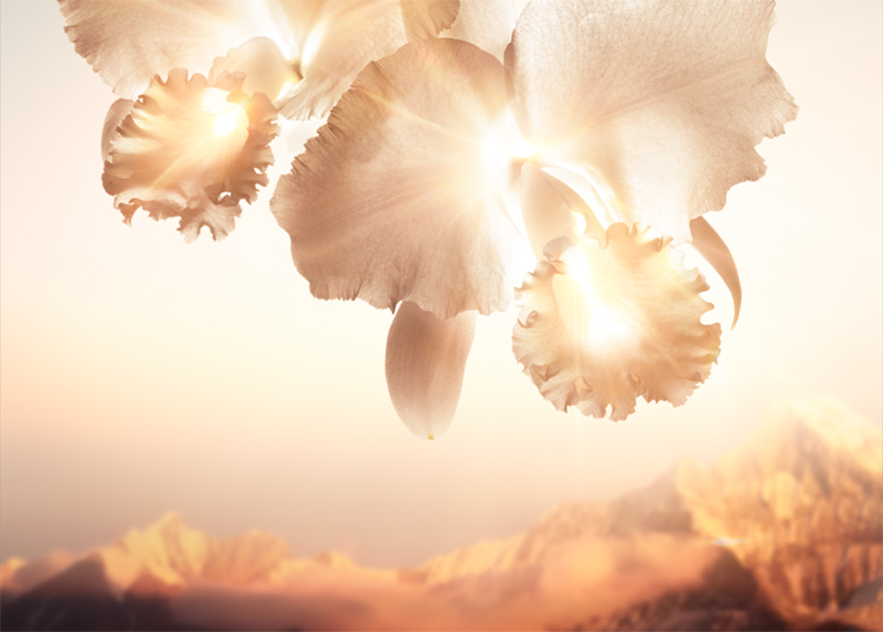 深入研究兰花的娇兰科研中心精心挑选了“光能大师”兰花:金钗石斛兰。这种神奇兰花的花朵雍容华贵、冰清玉洁。它的拉丁名为Dendrobium nobile,取自其在自然的生存方式:Dendrobium由希腊文"dendron"(树)和"bios"(生)组成,意为生活在树上。Nobile 源自拉丁语"nobilis"(高贵)。金钗石斛兰的华贵身姿只能于喜马拉雅山区的峰巅处瞻仰,因为那里的阳光最充裕。