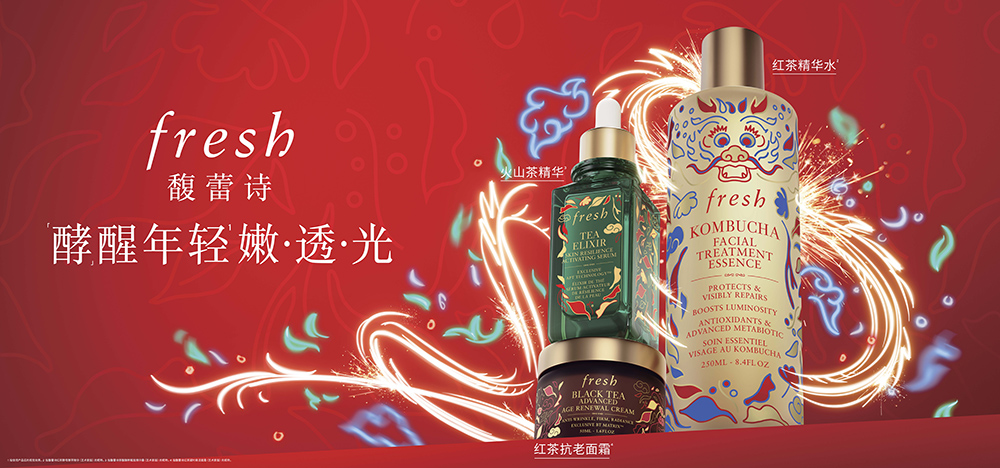 fresh馥蕾诗2024中国年限定版包含三款明星产品:红茶精华水[*1]融蕴灵魂成分黄金双酵[*2],开启细胞级抗氧模式,拉起肌肤抗氧双防线[*3],为肌肤提供长达24小时抗氧保护[*4]。火山茶精华[*5]采用独家APT茶萃肌能调适科技[*6],激发细胞动力[*7],强化肌肤屏障。红茶抗老面霜[*8]蕴含BT Matrix™ 红茶抗老成分[*9],强势「A醇」类效[*10], 温和植萃呵护。
