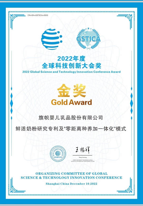 在生产和科研创新的加持下,凭借“种养加零距离一体化”模式和“鲜奶密闭输送系统”专利技术,2022年旗帜在第六届联合国工业发展组织全球科技创新大会上获得“全球科技创新大会奖金奖”,向世界展现中国乳业领先时代的“鲜活”创新实力。2023年旗帜奶粉用更高标准要求自身,与中国标准化研究院联合起草鲜活奶粉企业标准,为给中国宝宝带来更加鲜活、可靠的好奶粉。同期,全球咨询领域领军企业弗若斯特沙利文针对产品、销量等多维度调研后,认证旗帜奶粉为中国鲜活奶粉首创者[3],其在全国销量上位居首位[4]。