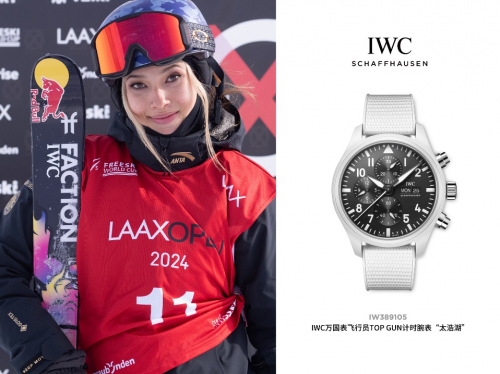 比赛期间,谷爱凌佩戴了IWC万国表飞行员TOP GUN计时腕表“太浩湖”(型号:IW389105。采用44.5毫米白色陶瓷表壳,漆黑表盘搭配Super-LumiNova®夜光涂层的黑色指针。白色陶瓷表壳质地坚硬,具备超强耐刮特性,并搭载IWC万国表自制69380型计时机芯,采用导柱轮设计,坚固耐用、精准可靠。计时按钮和表冠以精钢制成,表背采用钛金属材质,令整体设计格外耀目。