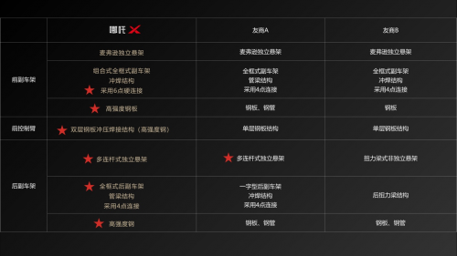对汽车舒适性、操控性、稳定性、安全性等影响巨大的悬架系统,哪吒X也有毋庸置疑的优势。