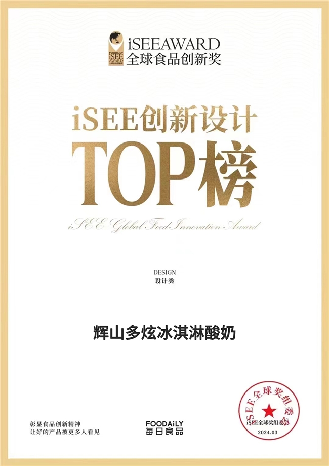 近日,备受瞩目的第六届iSEE全球食品创新奖复审晋级结果新鲜出炉,其中iSEE创新设计TOP30榜单正式揭晓,辉山牛奶旗下的明星产品——多炫冰淇淋酸奶系列凭借其独特的产品创新和设计理念脱颖而出,成功入选该榜单。