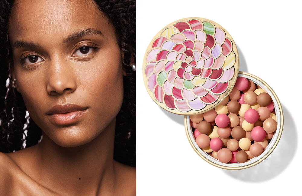 混合白色、玫瑰色和米色珍珠粉球,巧妙平衡冷暖色调,赋予亮白肌肤自然光泽与清透妆效。
