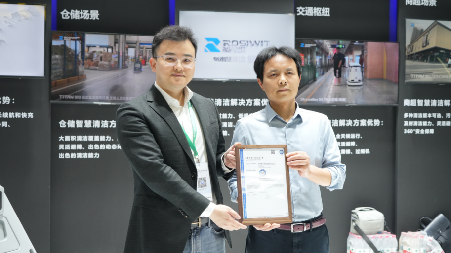 紧接着进行的是TÜV南德认证授牌仪式。TÜV南德大中华区消费品服务电子电气部总监金志强先生亲临现场,为霞智科技Titan 810 Robotic Scrubber颁发cTUVus认证证书。金志强表示:"我们非常高兴为霞智科技颁发cTUVus证书。当行业仍陷于价格内卷时,霞智科技已通过功能安全等级为Pl d 的CE MD和cTUVus的双认证布局,在欧美市场构建起“技术、合规、品牌”三位一体的竞争壁垒,实现了核心竞争力的跨越。" 这一认证不仅是对产品品质的权威认可,更为霞智科技开拓北美市场提供了重要保障。