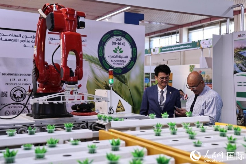 一家中企展示农业自动化技术。人民网 伊纳斯·易卜拉欣摄