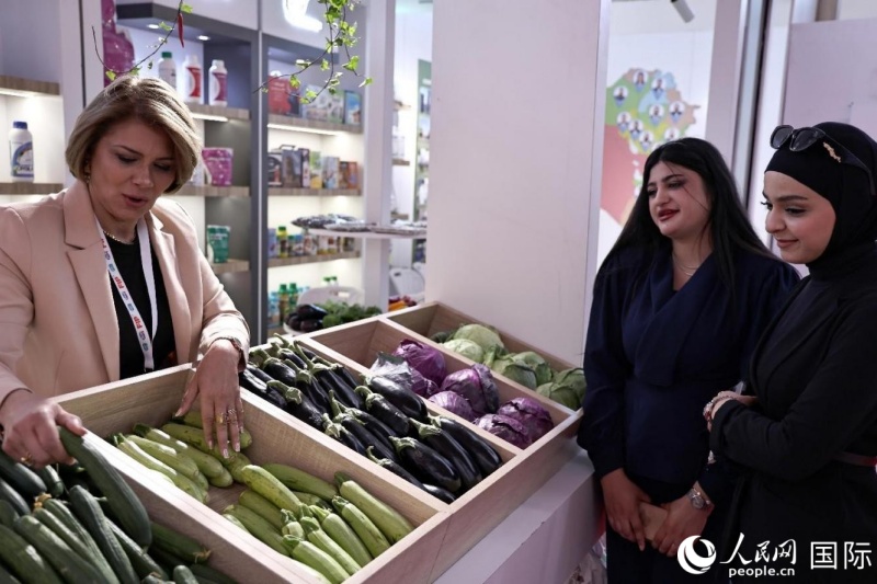 一名展商在展示有机农产品。人民网 伊纳斯·易卜拉欣摄