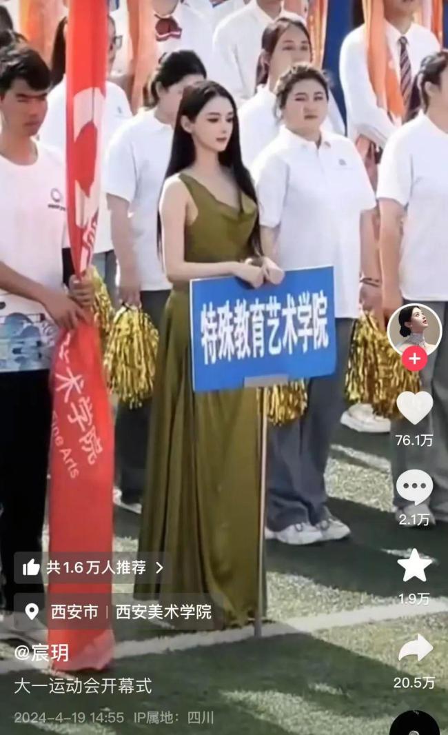西安美术学院院办确认宸玥是该校特殊教育艺术学院的大三学生。校友们评价她为人友善,乐于与人合影。在学校的运动会上,她多次举牌,视频账号粉丝接近50万,最高点赞量超过76万。面对持续不断的质疑,宸玥曾在4月4日晒出成长变化照,包括素颜穿校服的照片。