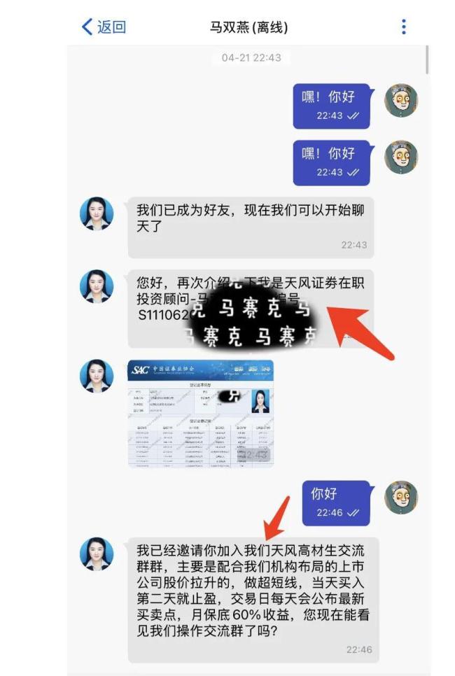 值得注意的是,尽管蓝鲸记者此前已多次曝光各类股票"杀猪盘"骗局,但今年以来诈骗手法仍在持续升级。与早期通过QQ联系、冒充游资大佬的简单套路不同,如今的诈骗团伙不仅改用加密通讯软件规避监管,更是精心伪装成正规券商机构,让投资者真假难辨。