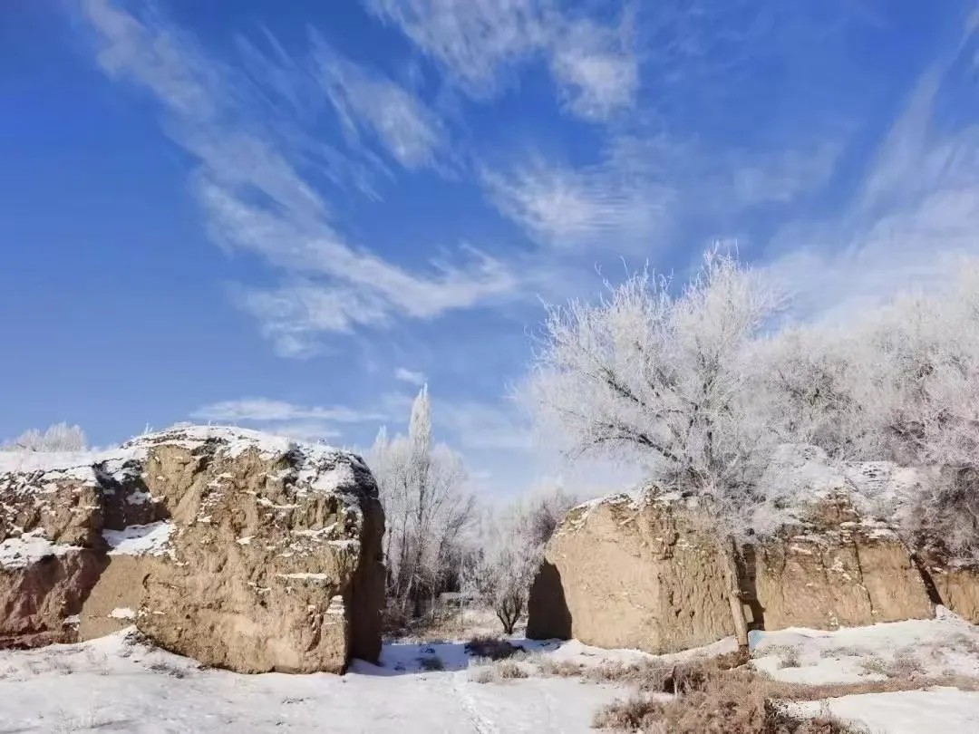 “忽如一夜春风来,千树万树梨花开。”这是唐朝边塞诗人岑参一千多年前在北庭所见的北国风光。大雪时节,新疆北部早已银装素裹,位于新疆昌吉回族自治州吉木萨尔县的北庭故城国家考古遗址公园,被皑皑白雪覆盖。