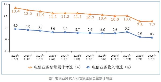 电信业务总体平稳。一季度,电信业务收入累计完成4469亿元,同比增长0.7%。按照上年不变价计算的电信业务总量同比增长7.7%。