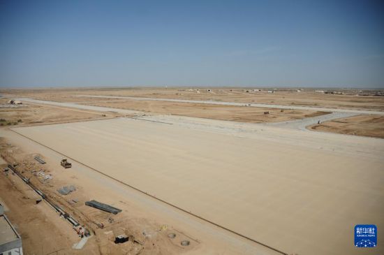 这是4月8日在伊拉克济加尔省拍摄的由中国建筑集团有限公司承建的纳西里耶国际机场项目施工现场。新华社记者 段敏夫 摄