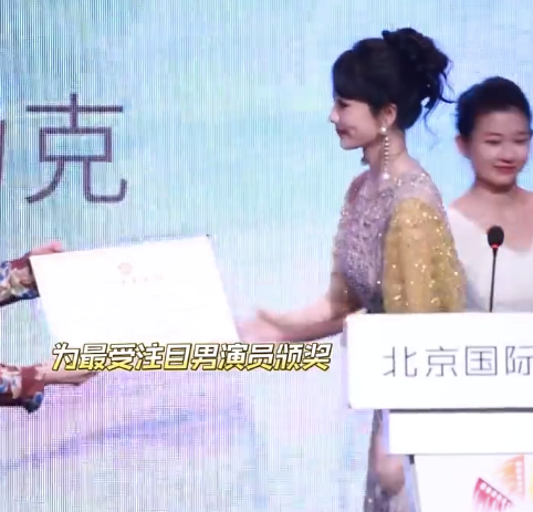 第十五届北京国际电影节-“注目未来”单元荣誉典礼内场,杨紫为最受注目男演员颁奖。