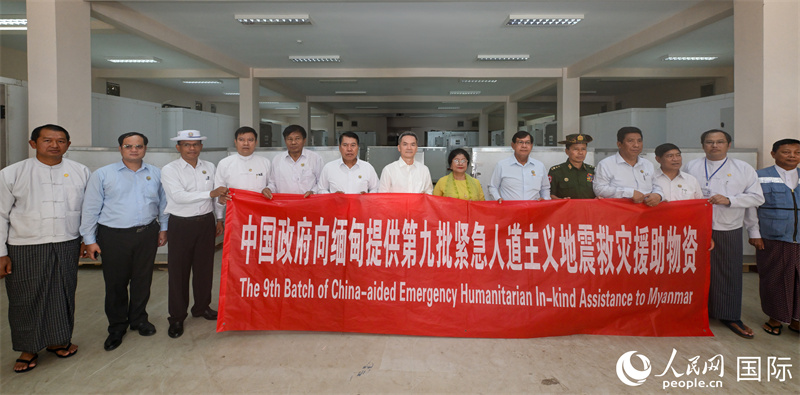人民网仰光4月26日电(记者谢佳君)4月26日,中国政府向缅甸提供的第九批紧急人道主义地震救灾援助物资运抵仰光卫生部中央冷库并交付。