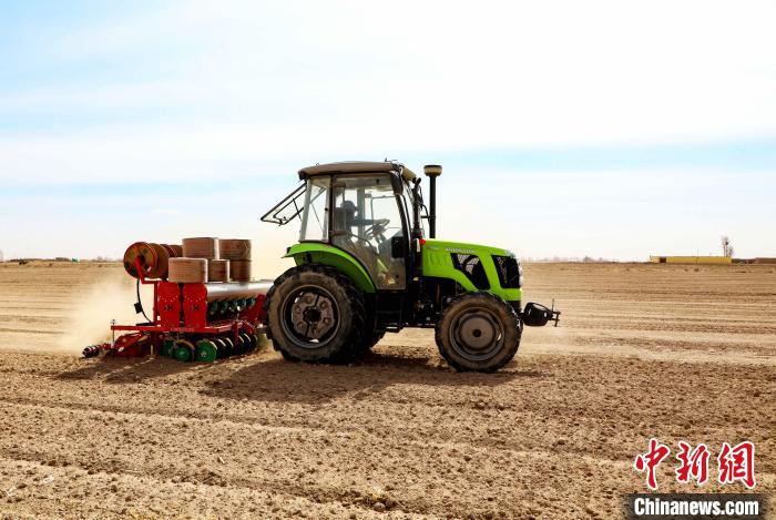 甘肃武威市民勤县的高标准农田里,配备北斗导航系统的农机正有序开展播种作业。(资料图)张晓娇 摄