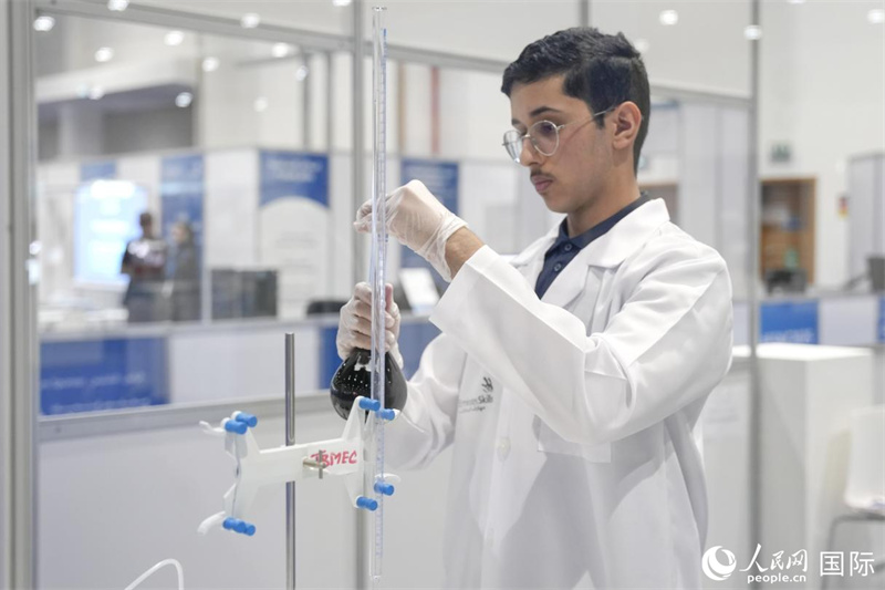 选手操作实验仪器。人民网 塔里克·易卜拉欣摄