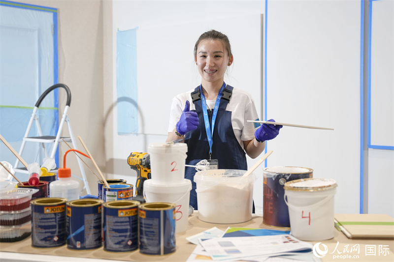 一名选手在刷墙。人民网 塔里克·易卜拉欣摄
