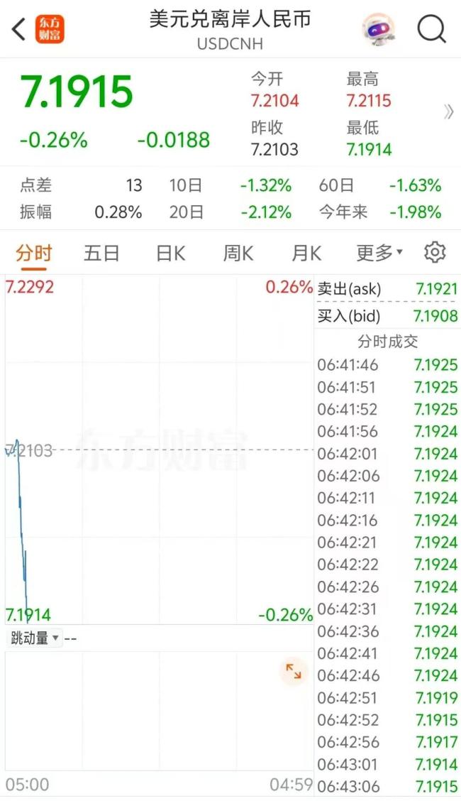 两条重要消息发布后,离岸人民币应声大涨,从7.2以上直线拉升至7.1915。此外,央行、金管总局、证监会计划于上午9时举行新闻发布会,介绍“一揽子金融政策支持稳市场稳预期”有关情况。此前召开的中央政治局会议提出经济工作的“四稳”(稳就业、稳企业、稳市场、稳预期)着力点,结构性货币政策有望发挥更大作用,引导金融资源精准高效支持“四稳”。