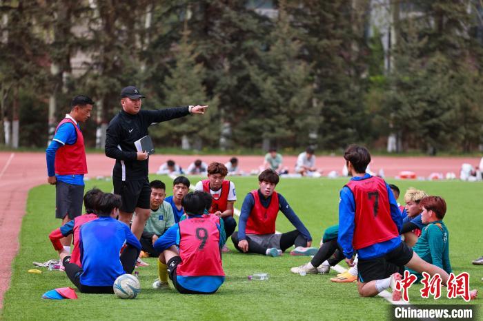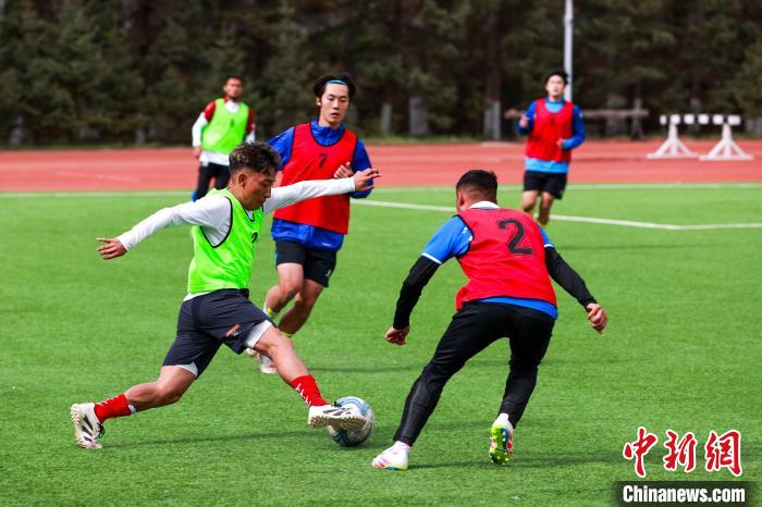 5月7日,参加第二届“大美青海·高原足球”超级联赛的8支劲旅在青海多巴国家高原体育训练基地集训。本届超级联赛将于5月10日在西宁市举行开幕式和揭幕战。该项赛事是在国内省级民众足球比赛中,时间跨度最长、地域分布最广、海拔落差最大的比赛。中新社记者 薛蒂 摄