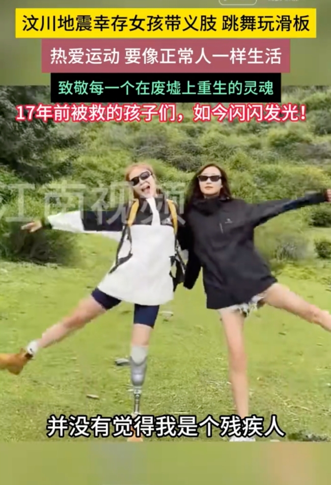 17年前的那场灾难,改变了无数人的命运,可有人却在废墟中开出了绚烂的花。汶川地震幸存女孩戴着义肢跳舞、玩滑板,还DIY出酷炫假肢,她的生活比很多健全人还要精彩!她没把自己当成残疾人,尽情享受运动带来的快乐,用行动告诉所有人,身体的残缺无法阻挡追求梦想的脚步。 在她眼中,别人能做到的,自己也能做到 ,这份乐观和坚韧,太让人敬佩。