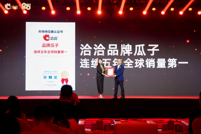洽洽获得沙利文认证品牌瓜子连续5年全球销量第一