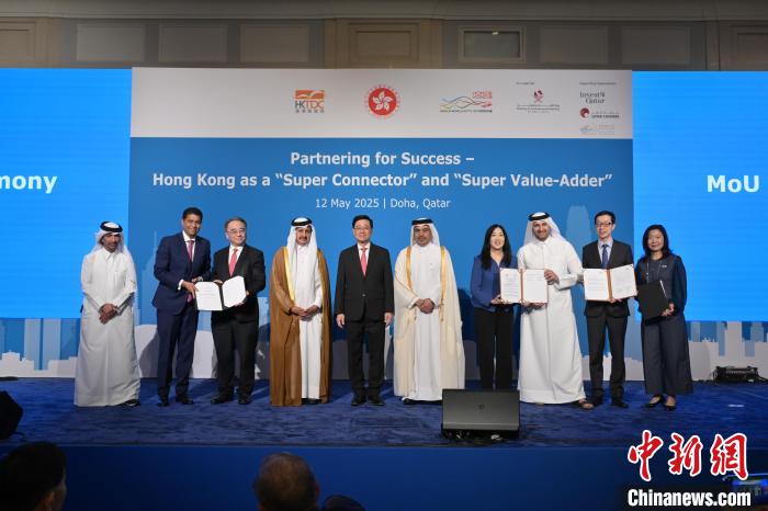 中新社香港5月13日电 据香港特区政府新闻处消息,当地时间12日,香港特区行政长官李家超率领由香港和中国内地企业家组成的商贸代表团继续访问卡塔尔。香港、内地和卡塔尔的政府部门、企业和机构交换并宣布35项合作备忘录和合作协议。