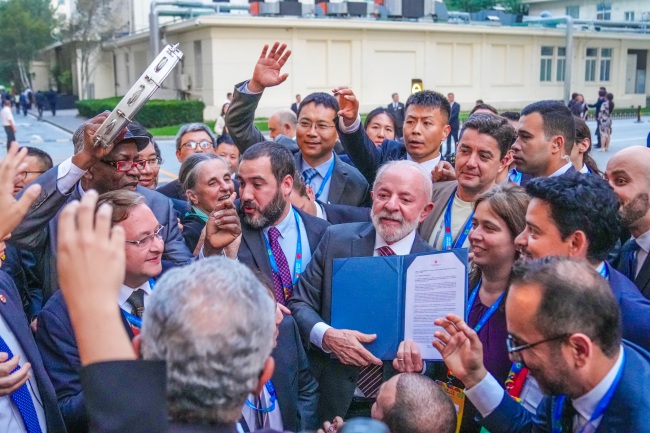 我们之间的合作坚不可摧。中国需要巴西,巴西也需要中国。两国可以携手让全球南方获得世界的尊重。5月12日傍晚,巴西总统卢拉在北京的中国-巴西商业研讨会发表闭幕致辞,这位即将年满80岁的总统精彩而有力的演讲赢得了台下阵阵掌声和欢呼。