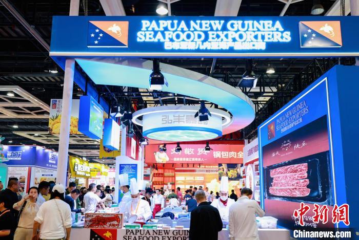 据介绍,本届大会规模持续扩大,共设立794个展位,源头厂商占比88.06%,辽宁以外的参展商占比65.1%,其中,来自大洋洲的巴布亚新几内亚独立国参展商是此次大会总路程最远的参展商,他们展出了南太平洋丰富的海产品。