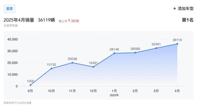在刚刚过去的4月份,吉利星愿以月销36,119辆的成绩,再一次超越比亚迪海鸥、五菱宏光MINI EV等产品,拿下了全品类细分市场的第一的位置。靠着低于海鸥的定价,以及高一点的参数配置和更大的空间表现,星愿上市9个月销量依然在持续走高,是一款当之无愧的爆款车型。