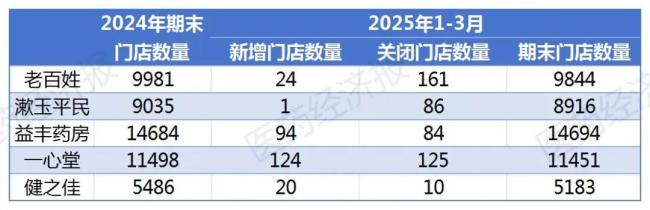 在华人健康加速扩张之时,大参林、老百姓、益丰药房等“万店巨头”集体转向关闭低效门店,暂停跨省扩张。老百姓2025年一季度关闭直营门店161家,新增仅24家;国大药房更在2024年战略性关闭1270家门店,退出“万店俱乐部”。