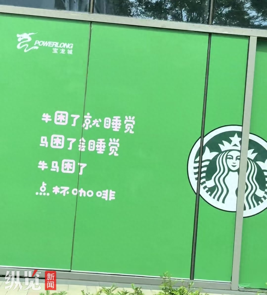 5月24日,一则关于杭州滨江宝龙城店铺装饰文案的视频在社交平台引发热议。视频显示,该商场一楼店铺的玻璃上贴有“牛困了就睡觉,马困了会睡觉,牛马困了点杯咖啡”的文案,并配有星巴克logo和宝龙城标识。5月26日,杭州滨江宝龙城工作人员告诉纵览新闻记者,该装饰贴纸是去年10月为迎合当时网络热梗而设计,目前已紧急撤下,并向公众及品牌方致歉。