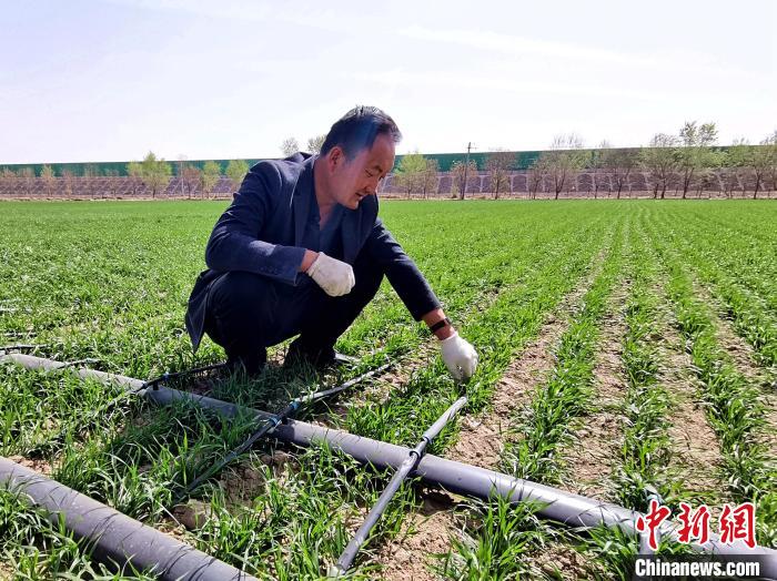 “浅埋设计既防风蚀又保出苗。”苏武镇苏山村浅埋式滴灌小麦示范点负责人马尚福介绍说,浅埋式滴灌水肥一体化技术,通过压力补偿式滴头与毛细管网协同运作,结合土壤墒情监测实时调控“高频微灌”模式,将定制水肥均匀、定时、定量输送至地下20厘米根区活跃层,使小麦根际微域形成动态平衡的“营养岛”,有效提升农田精准化管理水平。